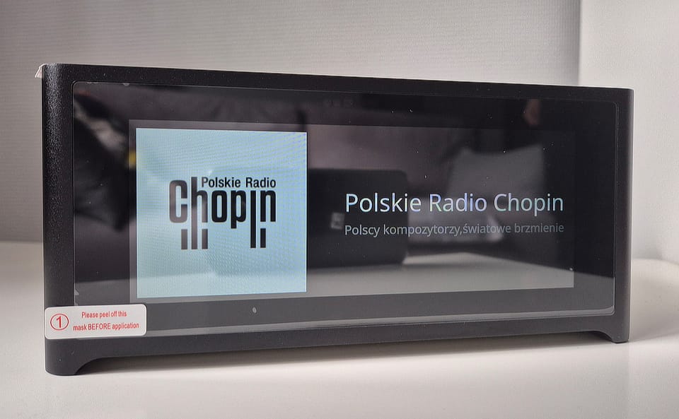 Projekt aluminiowej obudowy z charakterystycznym szklanym wykończeniem nadal wygląda świeżo. Górny panel wykonano z hartowanego szkła osadzonego na masywnej, podklejonej aluminiowej płycie, pełniącej jednocześnie funkcję konstrukcyjną i estetyczną. Z przodu zostawiono duży czytelny wyświetlacz dotykowy, co oznacza dotychczasowy sposób prezentacji informacji: podczas streamingu widać okładkę i tytuł utworu, a przy źródłach zewnętrznych można włączyć widok wskaźników wychyłowych – "analogowych" albo cyfrowych. Wygląda to wszystko znajomo, ale właśnie o to chodziło, bo przecież "fał-trójka" nie powstała od nowa.